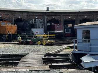 dem Gelände. Zusätzlich fuhr auch der Schienentrabbi (Gleiskraftrad Typ 1).