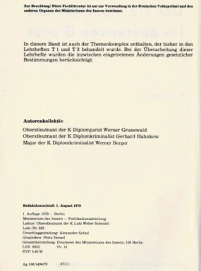 Ministerium des Innern — Publikationsabteilung, Berlin 1977.