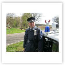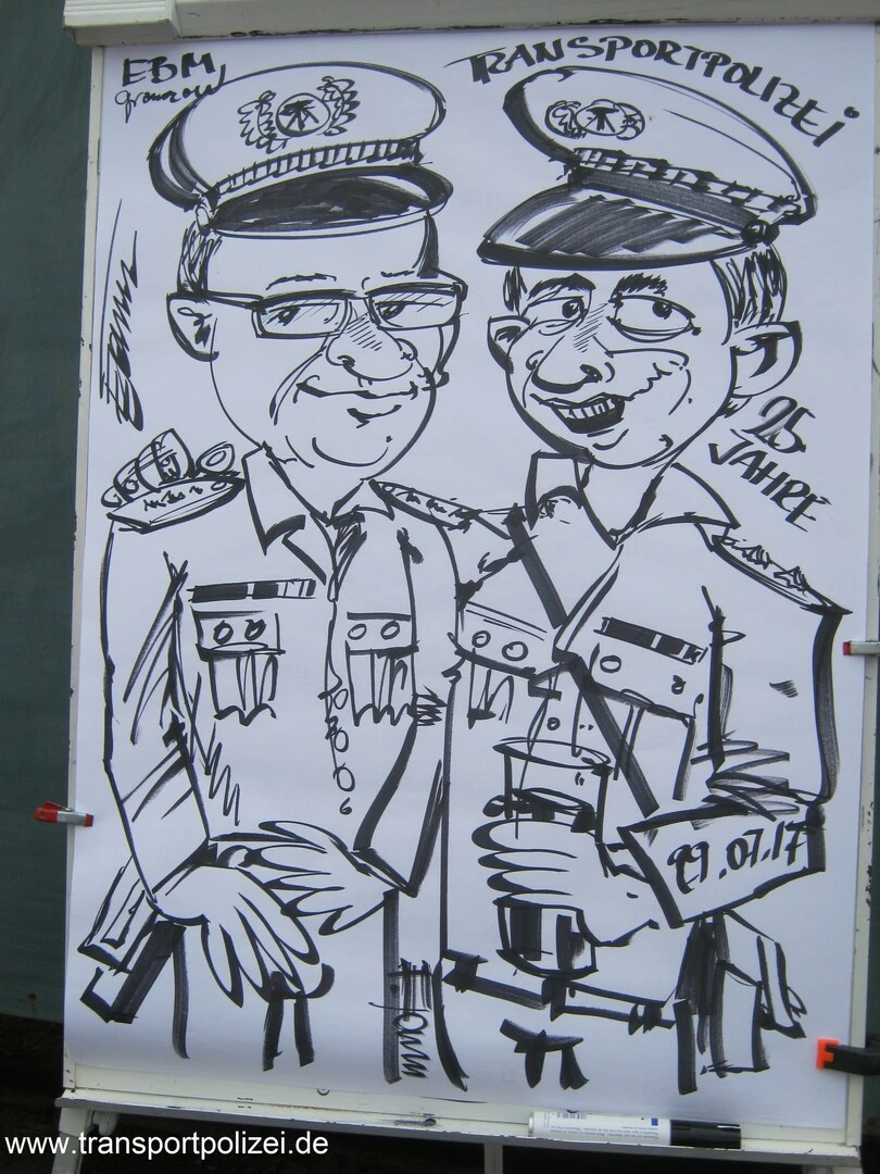 Karikatur unserer Person, als Darsteller der Transportpolizei.