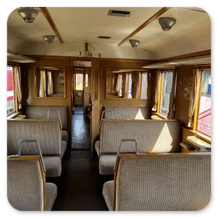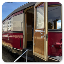 Der Zug, mit seinem historischen Reisezugwagen, führte auch einen Gepäck- und Fahrradwagen.