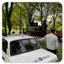 Als Darsteller der Transportpolizei waren wir mit unserem Funkstreifenwagen Wartburg vor Ort und haben verantwortungsvoll unseren Streifendienst versehen.