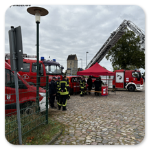 Die freiwillige Feuerwehr Pritzwalk stellte ihre Technik vor, darunter die Drehleiter (DLA[K]), das Löschfahrzeug (LF), der Mannschaftstransportwagen (MTW) und der Kommandowagen (KdoW).