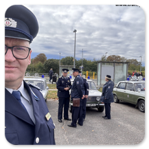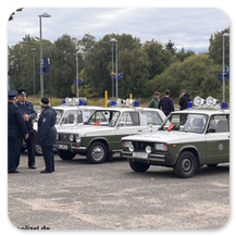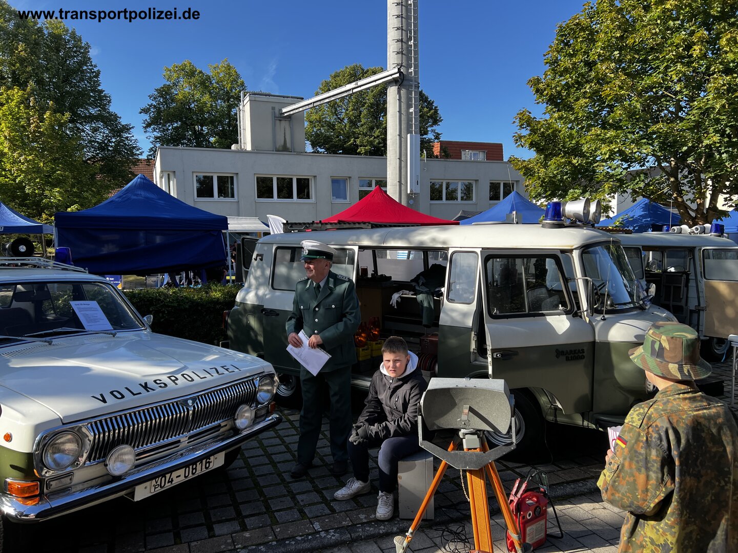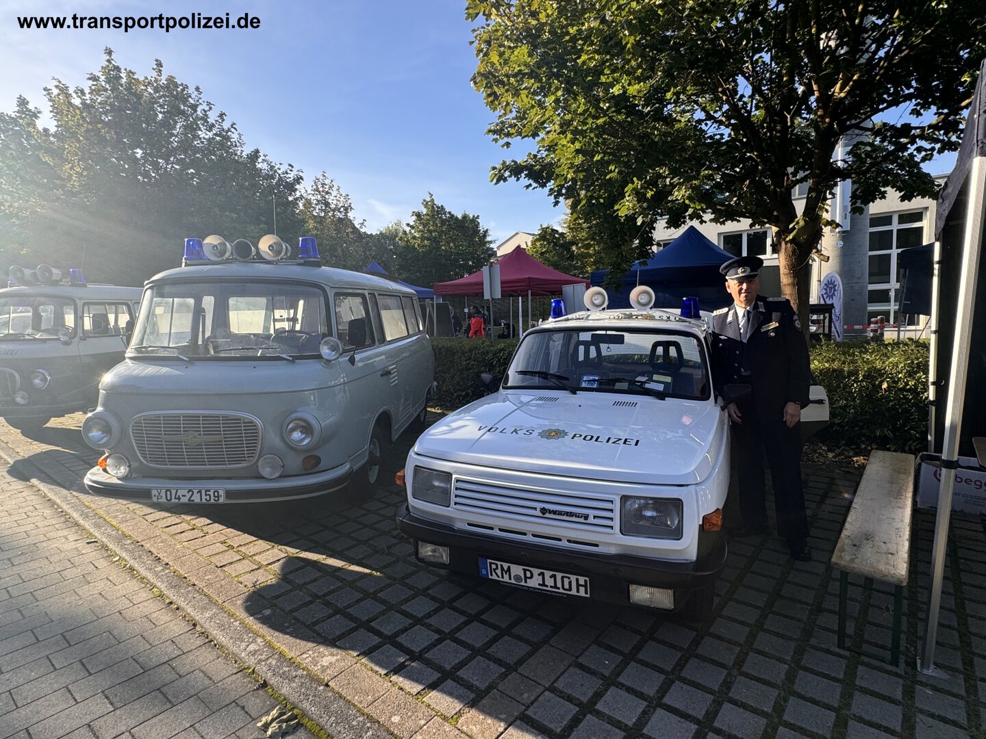 Die IG TRANSPORTPOLIZEI war mir 3 historischen Funkstreifenfahrzeugen und mit den dazugehörigen Streifenwagenbesatzung, in historischer Uniform der Transportpolizei präsent.