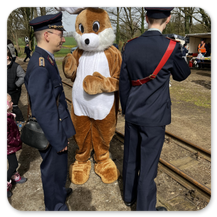 Besonders wenn am Bahnsteig in Brünkendorf schon der Osterhase steht und die Kinder begrüßt.