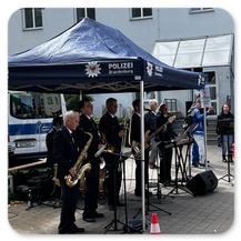 Das Angebot war vielfältig. Das Polizeirevier codierte Fahrräder und das Präventionsteam der Brandenburger Polizei informierte. Auch das Revier konnte besichtigt werden. Die Revierleiterin Silke Hercht informierte über den Tätigkeitsbereich.