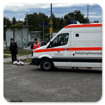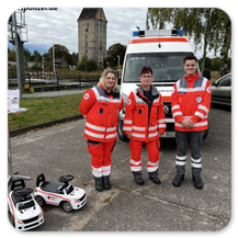 Das DRK begeisterte besonders die kleinen Besucher mit den Minieinsatzwagen für Kinder, welches auch eine eingebaute Sirene besitzt. Das DRK ist auch im Katastrophenschutz aktiv.