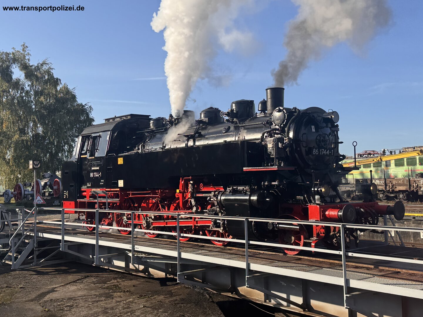 Dampflok 86 1744-1 im Einsatz. Sie stand für Führerstandsmitfahrten zur