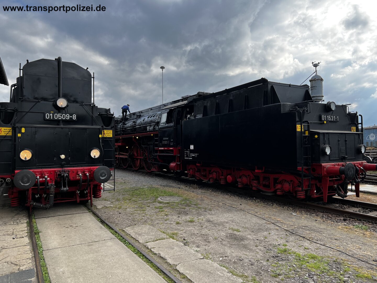 Zu der großen Fahrzeugausstellung waren auch zahlreiche Gastlokomotiven angereist. Unter anderem die Diesellok 232 903-5,120 274-6, 112 364-5 und die Dampfloks 01 1531-1,01 0509-8 sowie die E-Lok 211 030-2.