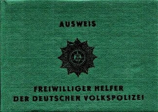 Bel Bestätigung erhielte der freiwillige Helfer zu seiner Legitimation einen Ausweis und zur Kennzeichnung die rote Armbinde mit dem Aufdruck ,,Helfer der Volkspolizei" und dem Emblem der Deutschen Volkspolizei.