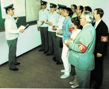 Quelle: Bildband "35 Jahre freiwillige Helfer der Volkspolizei" Herausgegeben: MdI Hauptabteilung Schutzpolizei / Fotos: Film- und Bildstelle des MdI (Herrmann)