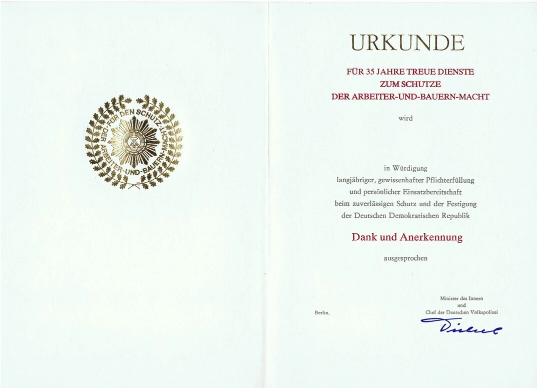 Urkunde für 35 Jahre Treue Dienste (MdI) |
