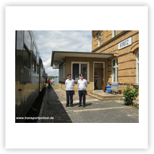 begleiteten die beiden Züge als Darsteller der Transportpolizei