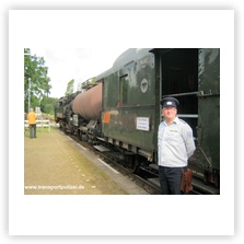 seiner Dampflok 131.060 und den historischen Reisezugwagen der „Berliner