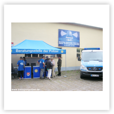Aufklärung, Beratung) hatte einen Informationsstand vor dem Polizeirevier.