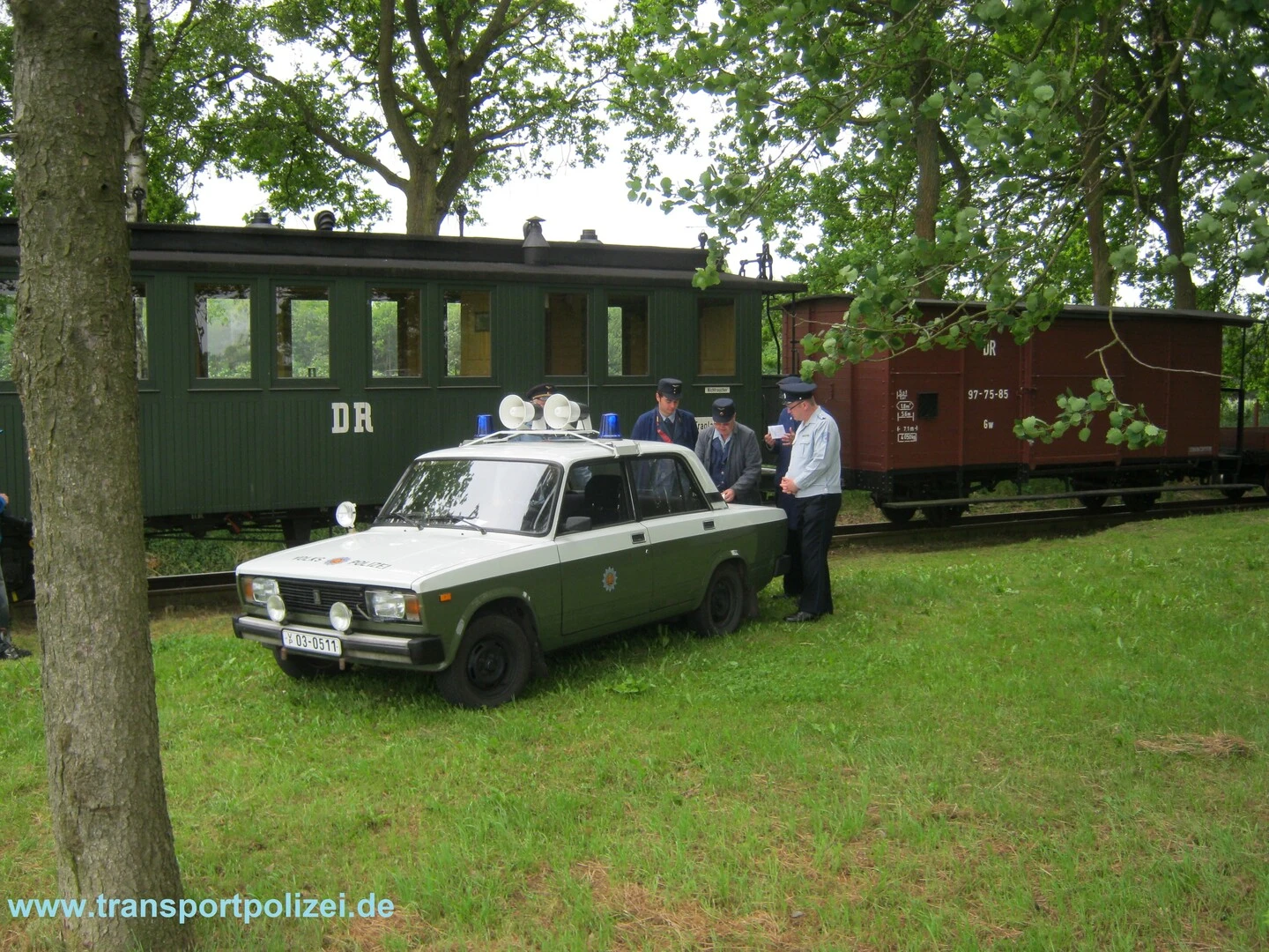 Lada 2105 und 4 Darstellern der Transportpolizei präsent.