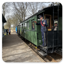 Der Zug, mit seinem historischen Reisezugwagen, führte auch einen Gepäck- und Fahrradwagen.