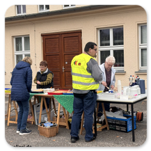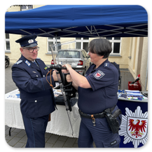 Das Angebot war vielfältig. Das Polizeirevier codierte Fahrräder und das Präventionsteam der Brandenburger Polizei informierte. Auch das Revier konnte besichtigt werden. Die Revierleiterin Silke Hercht informierte über den Tätigkeitsbereich.