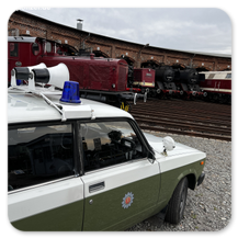 Unserer IG TRANSPORTPOLIZEI war mit dem Funkstreifenwagen Lada 2105 dabei. Als Darsteller der Transportpolizei konnten wir auch eine Zugstreife stellen.