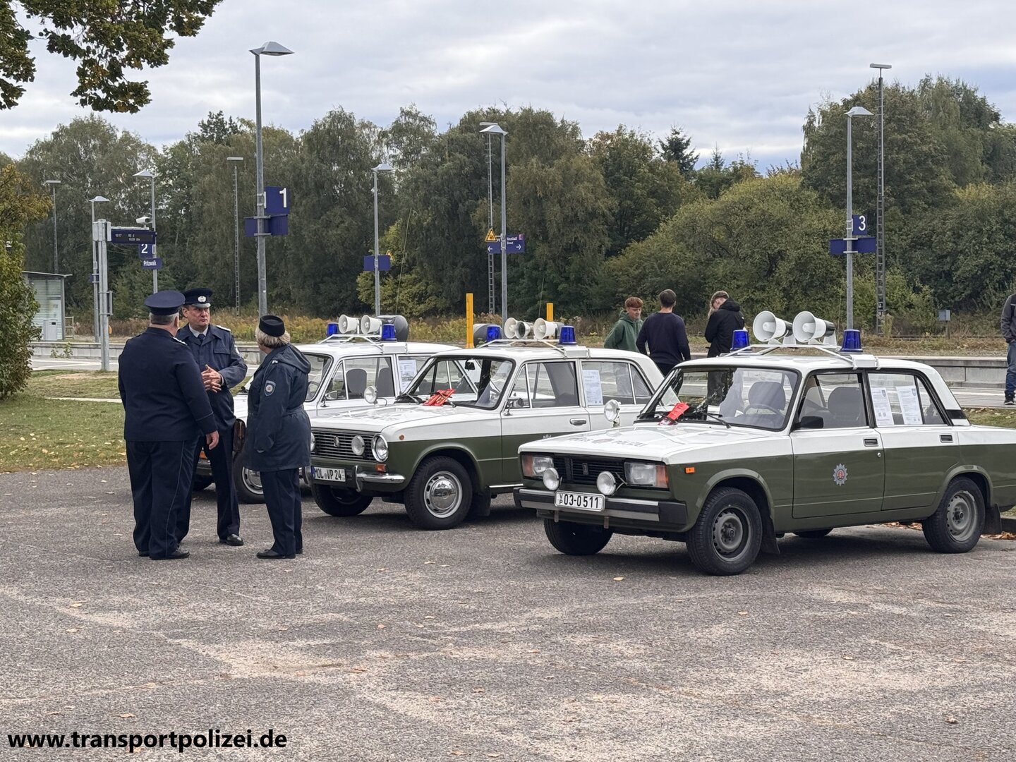 Die IG TRANSPORTPOLIZEI war mir 3 historischen Funkstreifenfahrzeugen und mit den dazugehörigen Streifenwagenbesatzung, in historischer Uniform der Transportpolizei präsent.