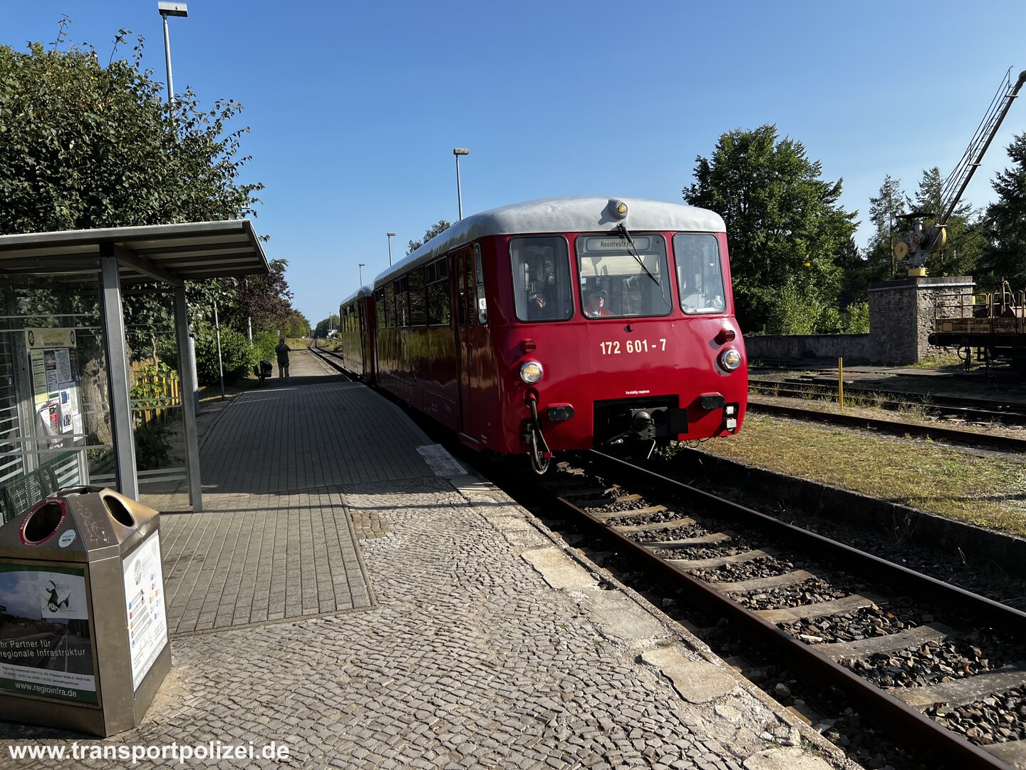Um 10:20 Uhr fuhr dann auch der historische rote Triebwagen vom Hafenbahnverein Neustrelitz in den Rheinsberger Bahnhof ein.