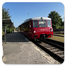Mit dem historischen Triebwagen (VT172), liebevoll auch Ferkeltaxe genannt, der Hafenbahn Neustrelitz, konnten die Besucher die Nebenstrecke pur genießen. In Herzberg (Mark) gab es wegen einer Zugkreuzung einen kurzen Halt, der von den Fahrgästen zum Fotografieren genutzt wurde.