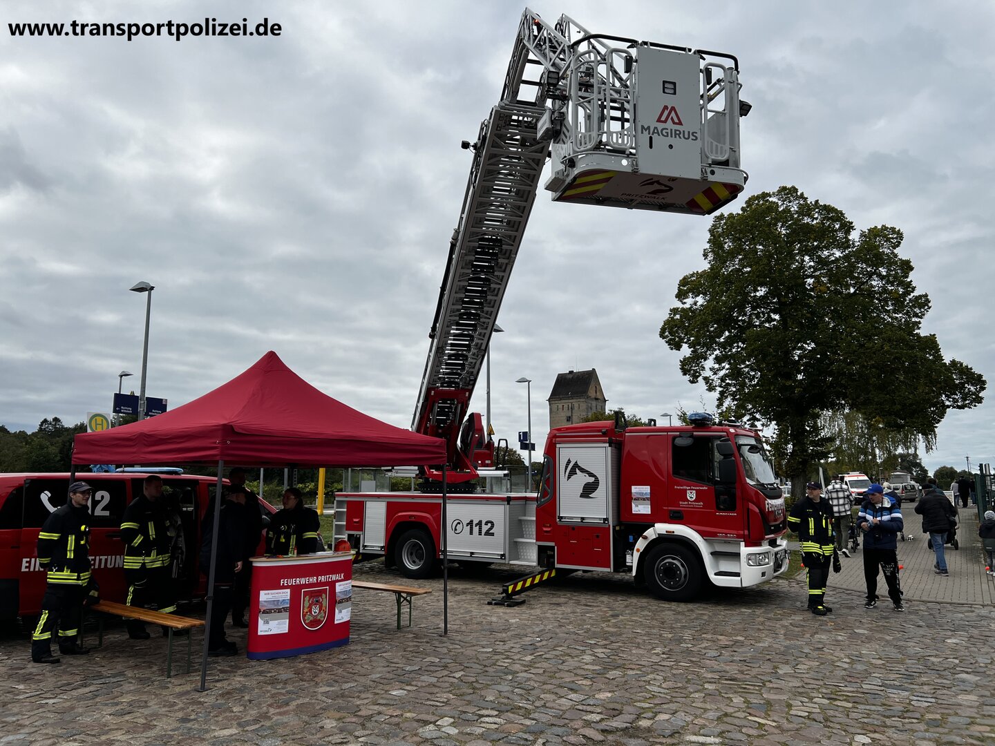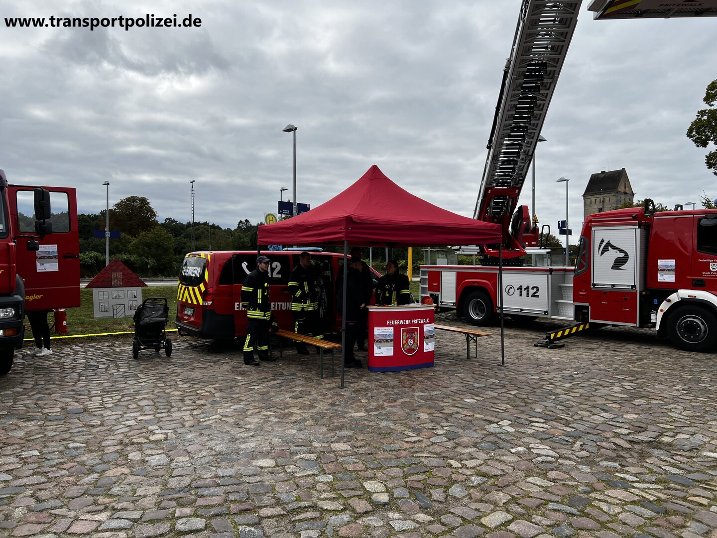 Die freiwillige Feuerwehr Pritzwalk stellte ihre Technik vor, darunter die Drehleiter (DLA[K]), das Löschfahrzeug (LF), der Mannschaftstransportwagen (MTW) und der Kommandowagen (KdoW).