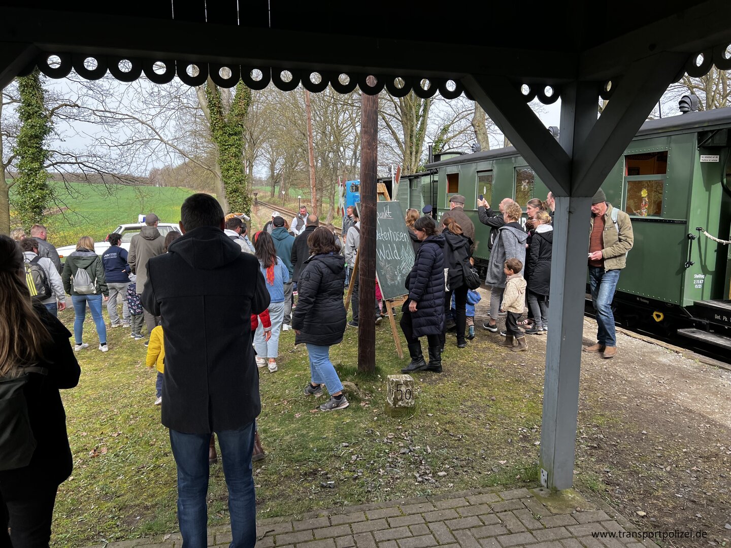 Besonders wenn am Bahnsteig in Brünkendorf schon der Osterhase steht und die Kinder begrüßt.