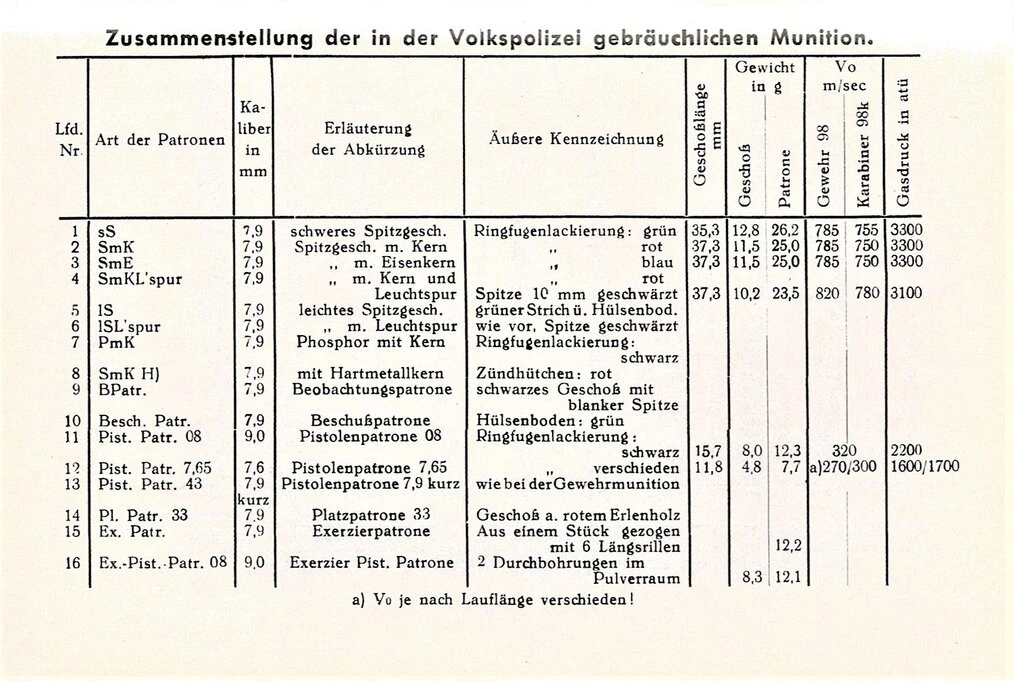 Quelle: DVP Nr.94, Munition der Deutschen Volkspolizei, Hauptverwaltung Deutsche Volkspolizei, Ministerium des Inner der DDR 1950